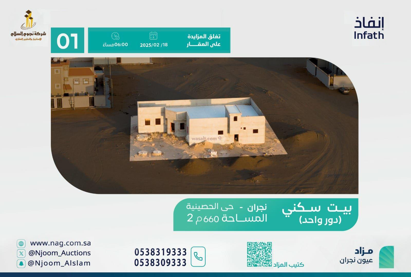 بيت سكني(دور واحد) في محافظة الحصينية - نجران