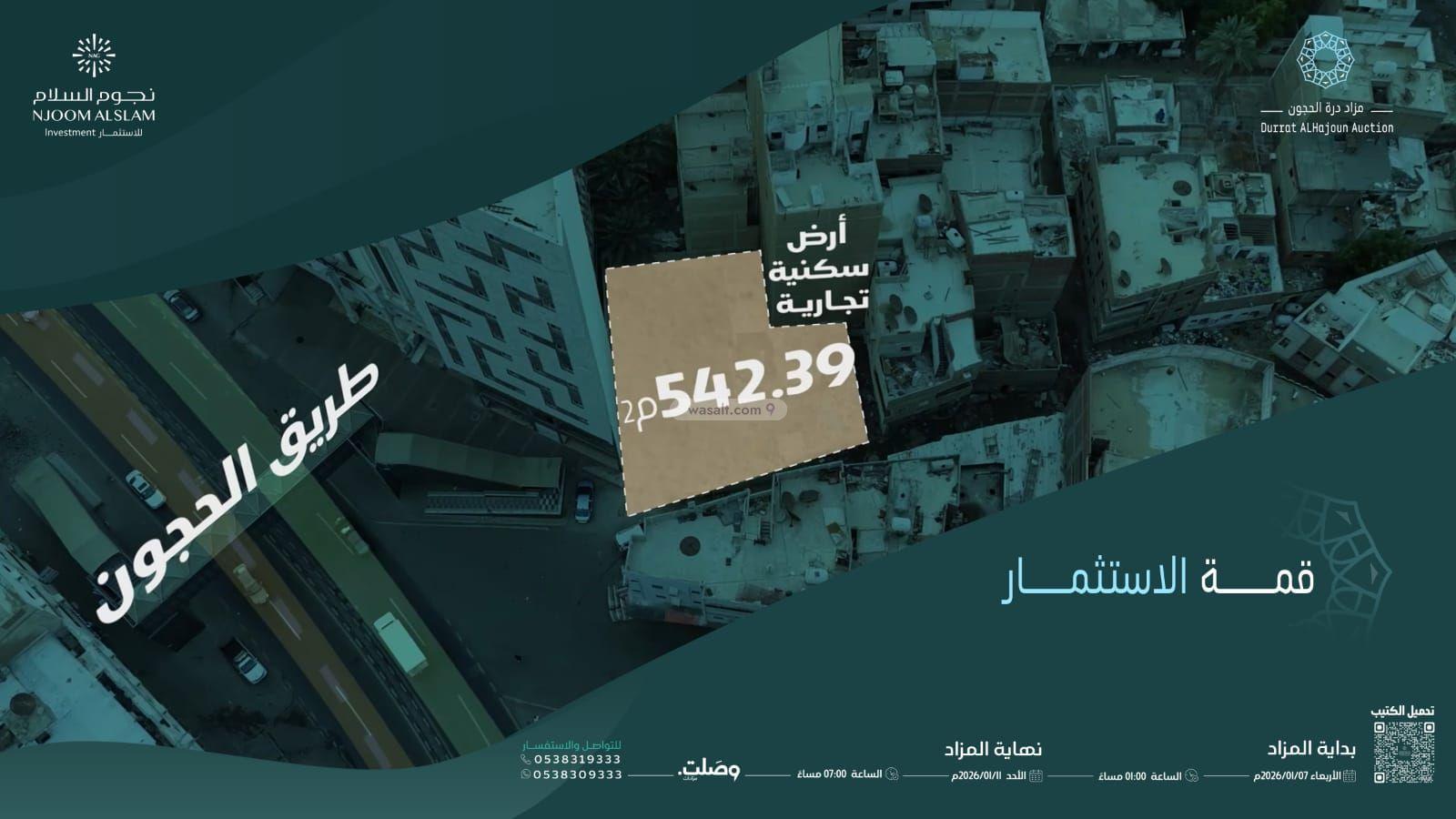 أرض سكنية تجارية بمساحة 542.39م2 في الزاهر-الحجون
